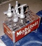 How's about one of those old oil bottle bolders. They would hold 4 or 6 bottle of oil. The oil bottles were made of glass. The racks were made of metal with a handle