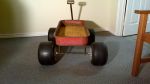 Well, this is the best I can do on the fly. Built this rig to pull my daughter around in, this weekend at the Rotary car show in the Soo. I think it looks cool. Not gonna paint it. Leaving it original. I think it looks better that way. Original except for the rolling stock that is. Might have to add a shifter though...and maybe an exhaust pipe.