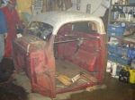 Anyway my Dad aka Grump came over this weekend for a bit of father son car time. I told him I was going to bring my 57 SD home before the snow flies but before I do I need to make room. So we dragged out the cab that's been sittin' in my garage untouched for a few years and started finishing up the welds so I could spray it then stuff it in the back yard. Well wouldn't you know that's all it took to get the juices flowing again on the truck. (of course seein' them bad ass LOSER rides in Syracuse may have helped a little)