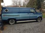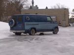 Sooo, plans have changed slightly, clutch and wheel cyld as well as shoes are ordered, I'm going to remove the rear vent, cut a patch, butcher it into place with speed screws and a sealer, replace small rear section of headliner with blue fur. Major interior cleaning, steam cleaning of floors and velvet walls in the rear. Reassembly of trim and install tunes.... Outside is getting some grinding, some ghetto repairs to minor rust involving bondo, fiberglass and anything else I can do cheap and dirty. The wheels are getting painted gold with new chrome nuts and center caps, sidepipes will be chrome with the stainless heat shield powder coated gold. New BFG 275/60/15 and 235/60/15's. Mask off van, then its getting Blitz Blacked, letters done in gold across side with self proclaimed non exsistant rod shop "Bygddy Kustoms" (this is on an iron cross on all my cars currently lol) Drive the snot out of it far and often. I have given myself a $1000.00 budget to completion putting me at $2500 total investment. Will finish collecting parts and paint for another month and a half then get it home and get working on it!