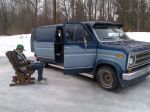 So, I blindly went for it, sent my buddy Steve (redpath) out with cash in hand to pick up the van. I had seen exactly 5 pictures of it, and only talked over email with the owner. And even that had a french/english language barrier lol. So to say I "gambled" is a huge understatement.Slam dunk...! It showed up, the undercarriage and rockers back up the "never seen snow" claim. With a boost it fired right up, ran quiet and smoke free. Paint is very very presentable and where it isn't is minor surface stuff and easily fixable. Wheels are actually in much better shape then i thought, and the rears look to be a 15 by 10! Has rear window louvers that are mint, a bitchin hard covered spare hanging off the rear door. Has new front tires, white lettered cooper's ....Then the interior! Diamond pleated blue vinyl everywhere, done very well, perfect wood paneling on the walls, still clean and intact. The absolute best blue FUR headliner....complete with a multi colored stained glass light fixture in place of the rear dome light. Needs some stuff put back together inside, but fairly minor. It had a TV etc and other lights at some point so there are multitude of switches etc that need to be removed. The headlight switch panel is hanging so I'm sure there's something wrong there as well. But on the whole, the thing is cool as hell and for very little money I can get this thing looking incredible and on the road....going to see how cool I can make it for as little money as possible.....started with $1500.00 buy in and $50 for the tow.....gonna head out to my buddies body shop where I'm storing on Ramysville for now and grab some pics on Saterday, but the pics make it look alot rougher then it actually is, the thing is niiiiiiice.....