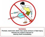 "It is possible to import parts of a lawn dart - plastic flights, metal bodies, and steel spigots - as well as a complete set of replacement parts to repair damaged lawn darts, into the US and Canada. However, fully assembled individual darts, sets, and kits are banned from entry by US and Canada customs."