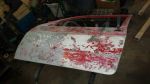 This is the driver's door, after I stripped all the useless filler and welded in some new metal behind the handle mounting points, as reinforcement.